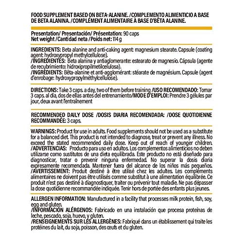 Beta Alanine is een niet-essentieel aminozuur dat bijdraagt aan de productie van carnosine in ons organisme, een dipeptide bestaande uit beta-alanine en histidin aan de verbetering van de fysieke prestaties en het verhogen van de spiermassa. Daarom is het een zeer populair sportaccessoire. Beta alanine voordelen Beta Alanine draagt bij aan de verbetering van de fysieke prestaties van sporters, met name bij intensieve oefeningen. De opmerkelijke eigenschappen zijn: draagt bij aan de verhoging van de spiermassa. – Ondersteunt het herstel van de spieren. – Verbetert de fysieke prestaties van sporters. – Vermindert vermoeidheid door de training. 100% vegan Life Pro Beta Alanine Premium Amino Amino is een voedingssupplement voor puur veganistische sporters. Dit maakt het geschikt voor alle soorten sporters, waarbij het 100% van zijn eigenschappen behoudt. 1 maand Life Pro Beta Alanine Premium aminozuur bevat 90 veganistische capsules. Om 100% van de voordelen te behouden, raden wij je aan om 3 capsules dagelijks in te nemen, die elk blik gedurende een hele maand leveren, wat bijdraagt aan een besparing.