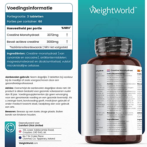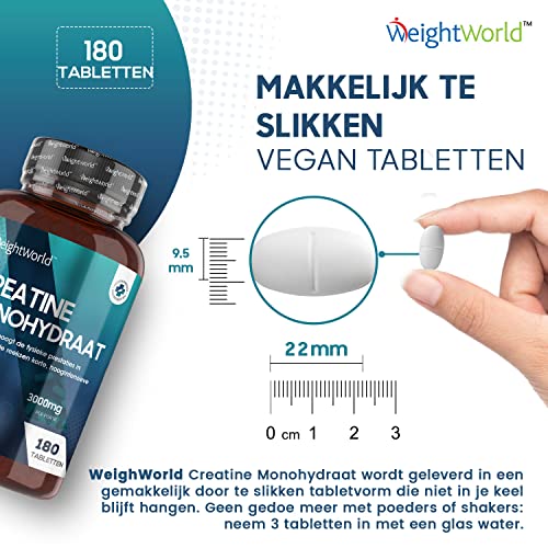 Specification: Creatine Monohydraat tabletten 3000 mg – 180 tabletten voor 2 maanden voorraad – Smaakloze tablet – Hoge kwaliteit…