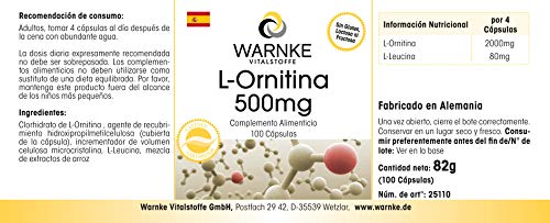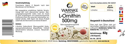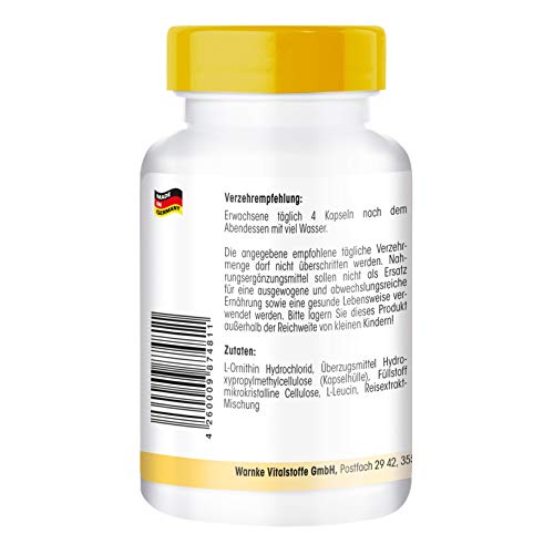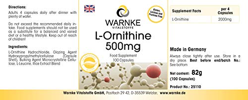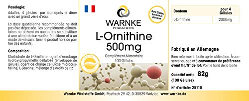 Uitstekende prijs-kwaliteitverhouding voor Duitse kwaliteit – Warnke Vitalstoffe – L-ornithine capsules – 500mg – 100 veganistische capsules