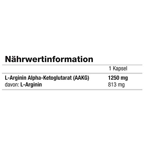 La arginina es un nutriente que juega un papel en la creación de nutrientes activos biológicos, tales como el óxido nítrico (NO). Además, la arginina sirve como un grupo de donantes formamidina de biosíntesis de la creatina. El producto está diseñado para personas activas y deportistas y también para hombres sexualmente activos.Formato:Caja con 300 cápsulas.Modo de Empleo:Durante el esfuerzo físico tomar 1 cápsula antes y después del entrenamiento y / o antes de dormir. Para las personas que se esfuerzan por mantener la eficiencia sexual, tomar 1-2 cápsulas antes de la actividad sexual.Ingredientes:88% arginina alfa-cetoglutarato (AAKG), agente de carga – celulosa microcristalina, antiaglomerante – sales magnésicas de ácidos grasos; cápsula (gelatina, colorante: E 171).Información Nutricional: Por cápsulaArginina alfa-cetoglutarato (AAKG)1250 mg