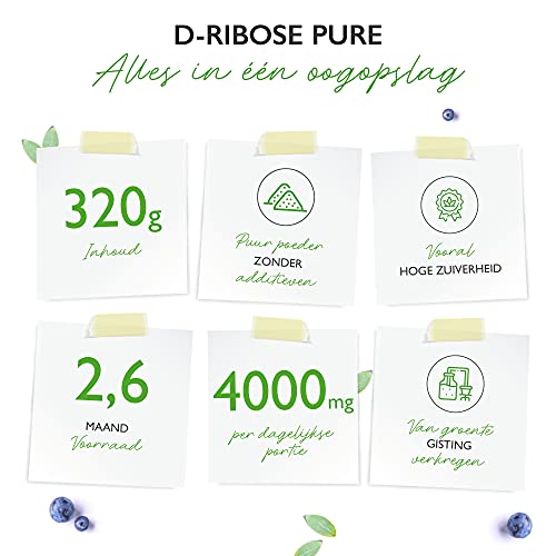D-Ribose Poeder – 320 g – 80 dagelijkse porties met 4 g (2,6 maanden voorraad) – Natuurlijk uit fermentatie – Puur…