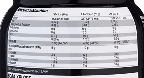 BCAA – staat voor branched-chain aminozuren (vertakte ketenaminozuren) en bevat aminozuur leucine, isoleucine en valine. Daarnaast zijn L-glutamine en vitamine B6 inbegrepen.