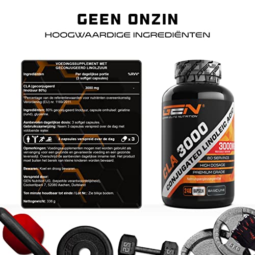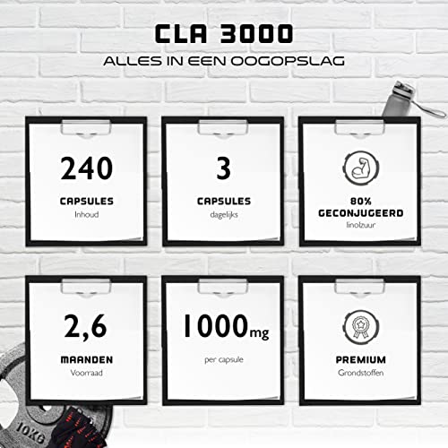 CLA – 240 capsules met elk 1000 mg – hoge dosis met 3000 mg per dagsport – laboratoriumgetest – geconjugeerd linolzuur…