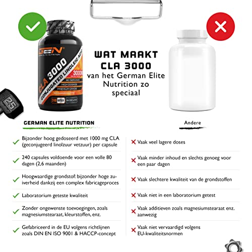Specification: CLA – 240 capsules met elk 1000 mg – hoge dosis met 3000 mg per dagsport – laboratoriumgetest – geconjugeerd linolzuur…