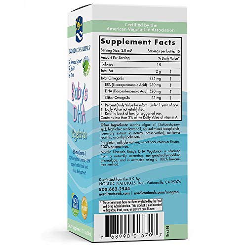 Specification: Nordic Naturals: Baby’s DHA, vegetarisch Omega-3-DHA – 30 ml