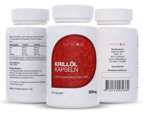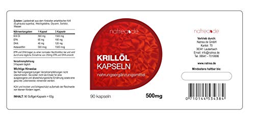 Specification: Natrea Crillolie capsules, 90 capsules, hoge dosis Omega 3 + DHA + EPA ✔ 500 mg pure krillolie per capsule