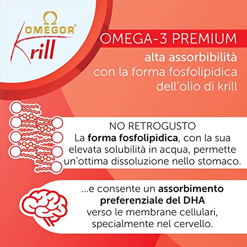 Omegor krill is een natuurlijk voedingssupplement voor krillolie dat, dankzij een nieuwe zuiveringstechnologie, meer fosfolipiden, meer choline, meer omega-3 epa en dha en astaxanthine bevat dan de vorige generatie krilloliën.