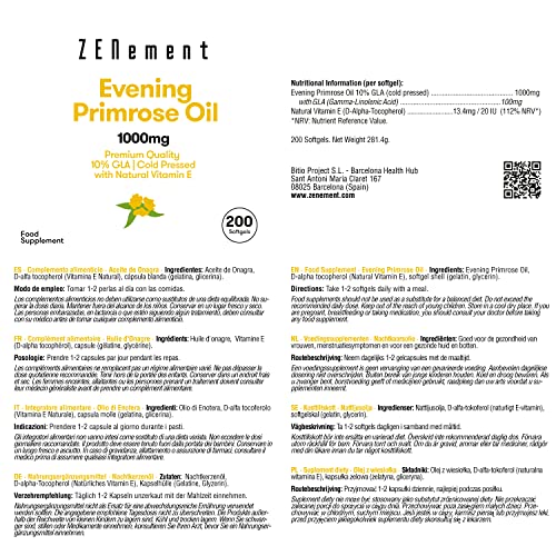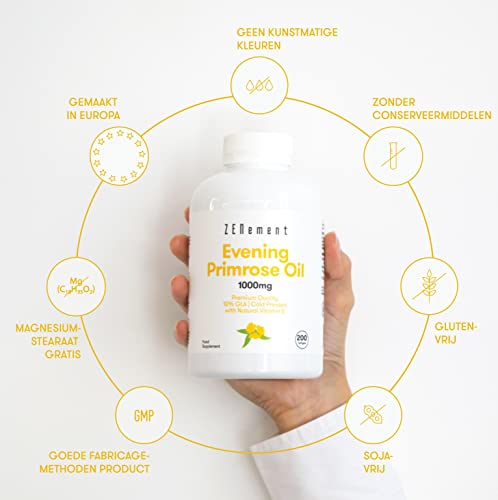 Specification: Nachtkaarsolie met Vitamine E | 1000 mg x 200 Capsules | Hoge kwaliteit 10% GLA, koud geperst | Hormonale balans voor…