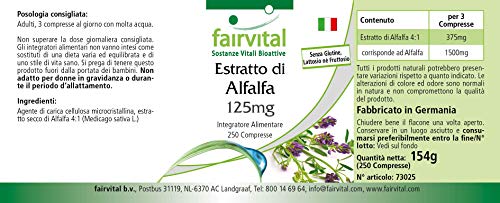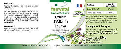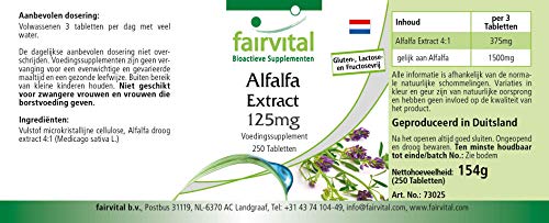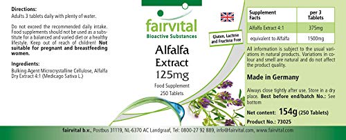 ✔ Fairvital DUITSE KWALITEIT Dagelijkse dosis: 3 tabletten per dag bevatten 1500mg alfalfa (Medicago sativa). Hoog gedoseerd! Uitstekende prijs-kwaliteitsverhouding!