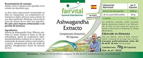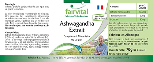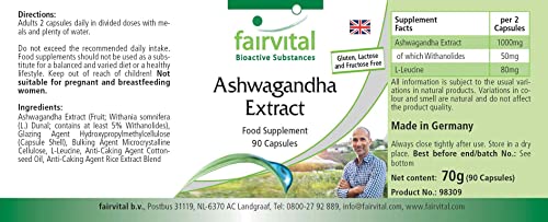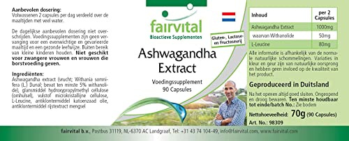 ✔ Fairvital GERMAN QUALITY: Dagelijkse dosering: 2 capsules per dag bevatten 1000mg ashwagandha-extract, waarvan 50mg withanolide. Hoge dosis! Uitstekende prijs-kwaliteitverhouding!