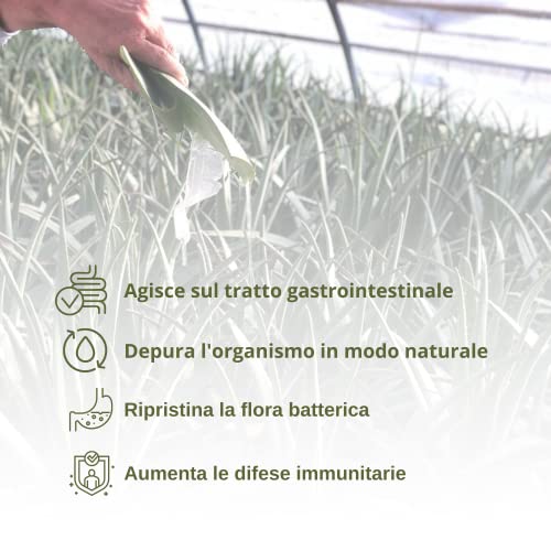ZUIVERENDE FUNCTIE: Aloë vera-sap heeft oneindig veel voordelen. Zo ondersteunt en kalmeert het het spijsverteringsstelsel en ontgift het het lichaam op een natuurlijke manier. De zuiverende werking ervan helpt ons lichaam om gifstoffen te verwijderen die zich in de loop van tijd hebben opgestapeld, met name door voeding. Door in te werken op de darmen en de bacteriële flora te stimuleren, beperkt het de verspreiding van ziekteverwekkers, waardoor de opname van voedingsstoffen wordt verbeterd.