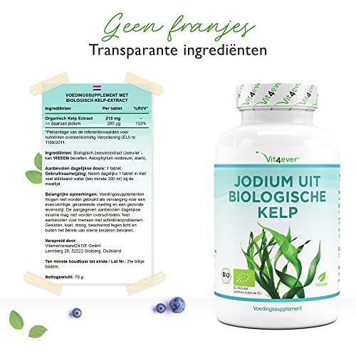 Biologische kelp (natuurlijk jodium) – 365 tabletten met elk 200µg jodium uit biologische bruine algen – Zonder…