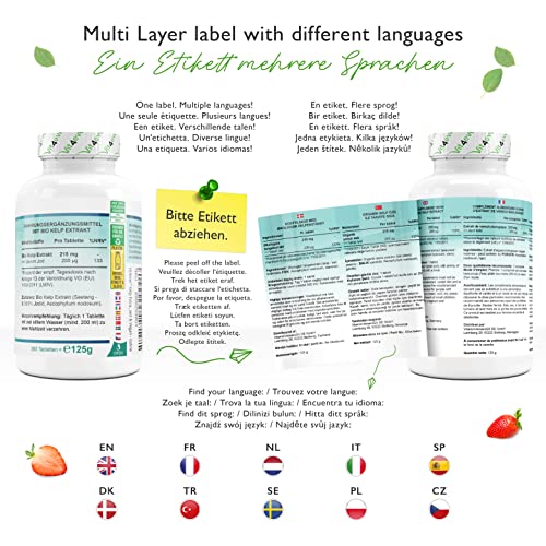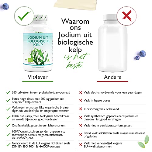 UITSTEKENDE PRIJSWAARDE: 365 tabletten met elk 200µg natuurlijk jodium uit organisch kelp-extract (organisch bruin zeewier). Voor een volledig jaar. 100% biologische kwaliteit van gecontroleerde ecologische teelt.