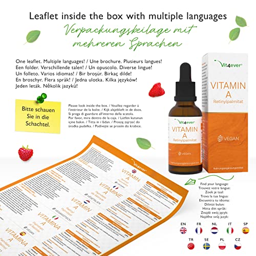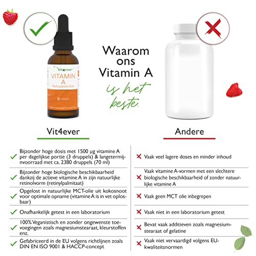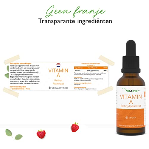 Vitamine A druppels hoge dosis – 70ml (2380 druppels) – Premium: Echte vitamine A ester (retinyl palmitaat) in MCT olie…