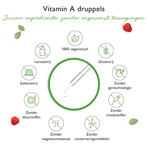VEGAN & ZONDER ONGEWENSTE ADDITIEVEN: Onze vitamine A druppels zijn 100% veganistisch & vrij van alcohol, magnesiumstearaat, smaakstoffen, kleurstoffen, stabilisatoren, gelatine en natuurlijk ook lactosevrij, glutenvrij & zonder conserveermiddelen.