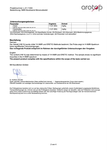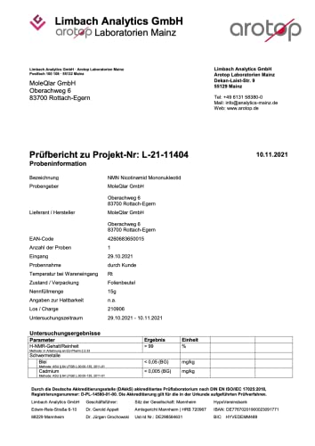 ✔️In Duitsland getest en verpakt: Uthever (TM) NMN van MoleQlar wordt in geaccrediteerde laboratoria in Duitsland getest op echtheid, zware metalen en verontreinigingen.