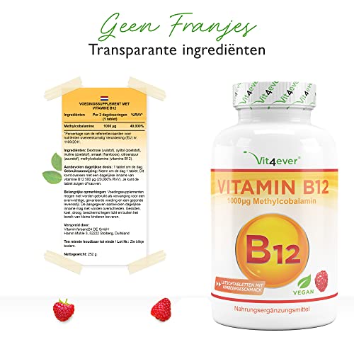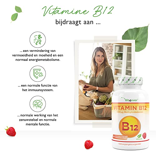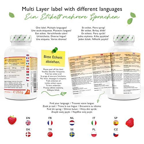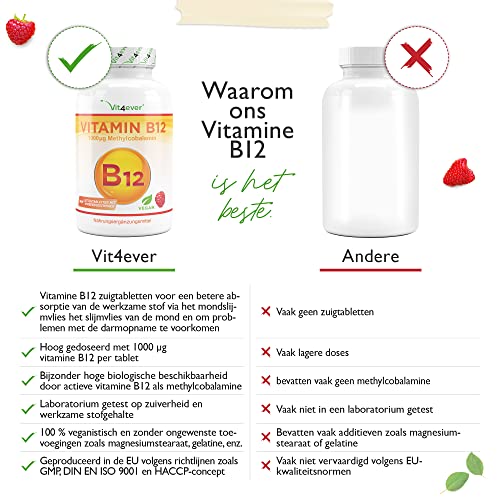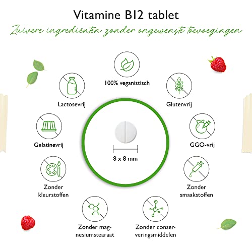 Specification: Vitamine B12 Veganistisch – 365 zuigtabletten met frambozensmaak – Premium: Actieve Methylcobalamine – Hoge Dosis