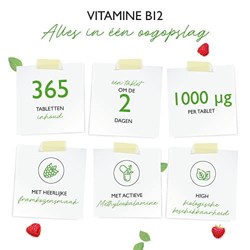 Vitamine B12 Veganistisch – 365 zuigtabletten met frambozensmaak – Premium: Actieve Methylcobalamine – Hoge Dosis