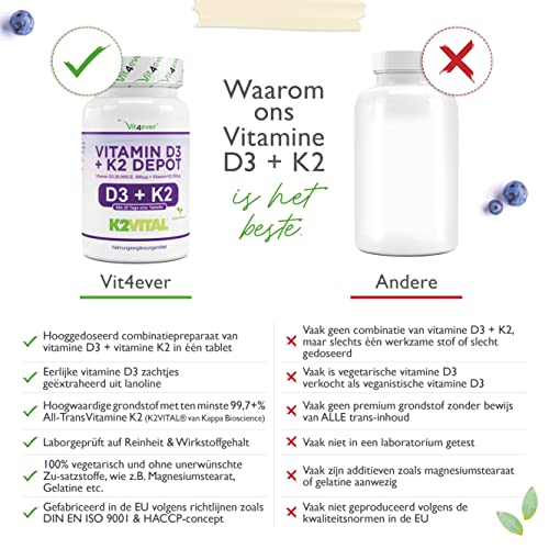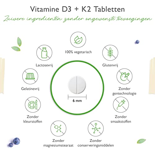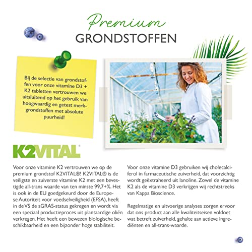 UITSTEKEND PRIJSVERMOGEN: 180 tabletten per blikje. Combinatieproduct met 20.000 I.U. vitamine D3 + 200 µg vitamine K2 menaquinone 7 – MK7 per tablet. Gegarandeerd volledig trans-gehalte van ten minste 99,7%.