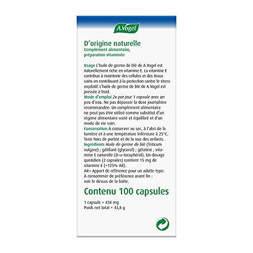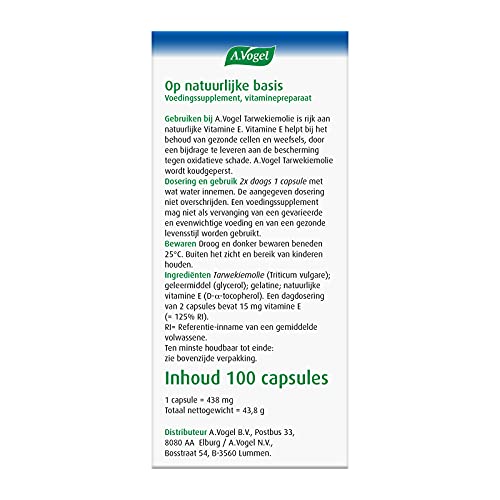 Specification: A.Vogel Tarwekiemolie capsules + vitamine E (100 Capsules)