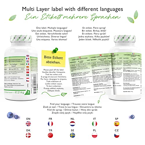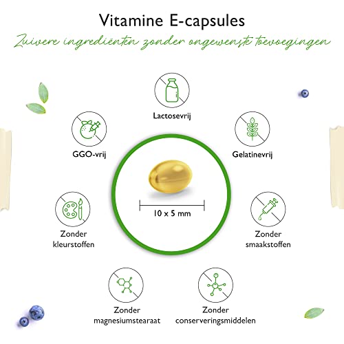 HOGE ZUIVERHEID: Onze vitamine E softgel capsules zijn vrij van magnesiumstearaat, smaak- en kleurstoffen en natuurlijk GMO-vrij, lactosevrij en glutenvrij.